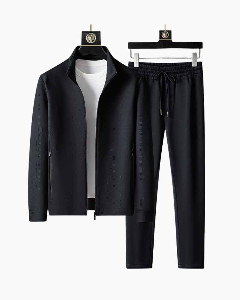 This two-piece tracksuit set is crafted from a premium blend of high-quality cotton and flexible lycra fibers, offering natural breathability with added stretch for unrestricted movement. The relaxed fit ensures comfort, while the clean design maintains a timeless, modern appearance.